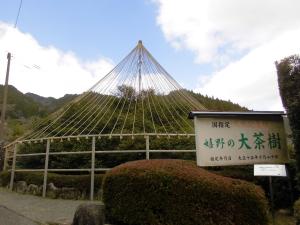 이 나무는 근처에 있는 시로이시 마을에 살았던 무사 요시무라 신베에(1603~1657)가 심었다고 알려져 있습니다. 신베에는 다이묘(넓은 영지를 다스린 대영주)인 나베시마 가쓰시게(1580~1657)로부터 우레시노의 경비 임무를 명받아 사라야다니로 이주했습니다. 신베에는 인근 구릉지의 광활한 땅을 개척하여 차밭을 만들었고, 신베에의 후손이자 지역 차 상인인 요시무라 도주로와 함께 지역의 차 거래를 보급했습니다. 이 때문에 신베에는 우레시노 차의 시조로 알려져 있습니다. 신베에가 재배한 차나무는 현재도 이 지역의 차밭에서 볼 수 있습니다.