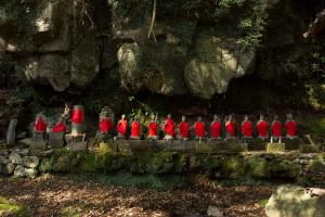 The group of 13 stone Buddhist statues in the Nishi Yoshida area of Ureshino were carved on the island of Shikoku and transported by boat to nearby Shiotatsu. The statues were then hand-carried to their inland mountain location in the early Showa era (1926–1989).