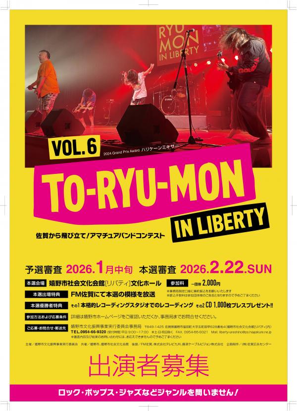 今年も佐賀県嬉野市を舞台に、アマチュアバンドコンテスト「TO-RYU-MON IN LIBERTY vol.6」開催決定!