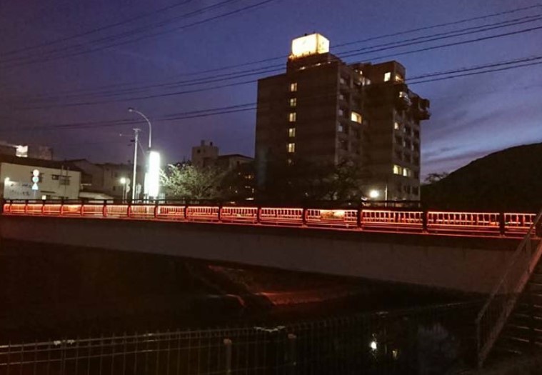 「世界アルツハイマー月間」に合わせて、認知症の普及啓発のシンボルカラーであるオレンジ色に曙橋(嬉野町)をライトアップしています。