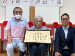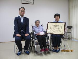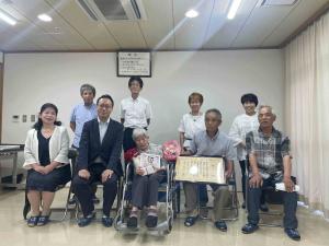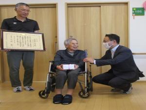 今年度は15名の方が100歳を迎えられます。到達者の方々には、祝い状と記念品が贈呈されました。