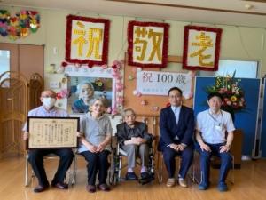 9月15日の敬老の日に伴い、9月9日に今年度100歳を迎えられる方々と市内最高齢者の中野タカヨさんを村上市長が表敬訪問しました。