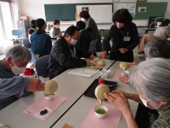 - うれしの茶入りいしかきだご(塩田教室)、お茶蒸しパン(嬉野教室)