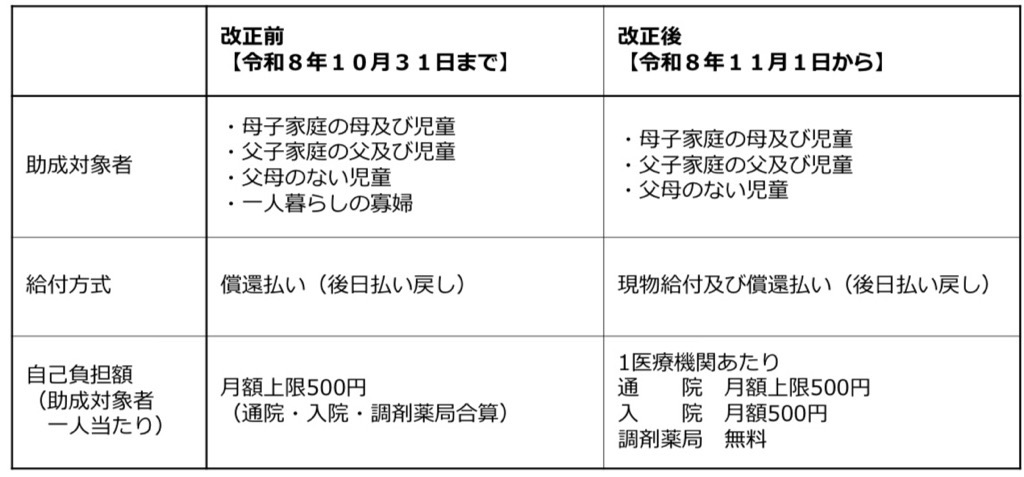 令和8年11月1日からひとり親家庭等医療費助成制度が変わります。