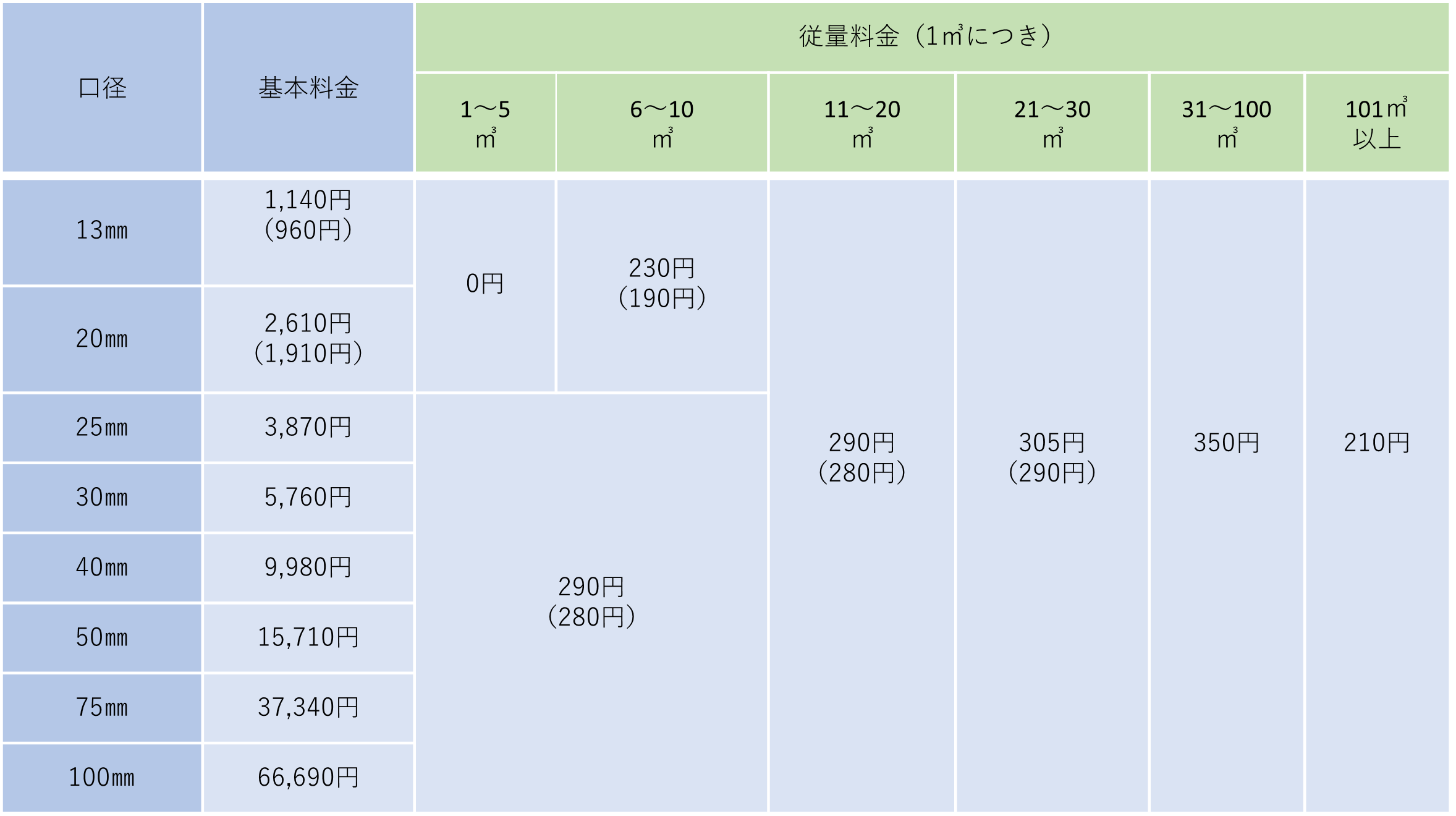 ※令和8・9年度は、料金改定による水道利用者の急激な負担増を和らげるために、カッコ内の料金を適用します。