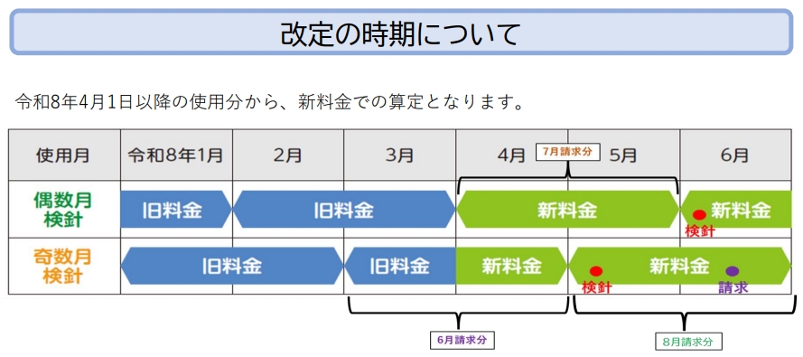 持続的に安全・安心の水道水を安定して供給するため、令和8年4月以降使用の水道料金水準の平均30%(当初2年間は平均20%)の引き上げ改定を実施します。