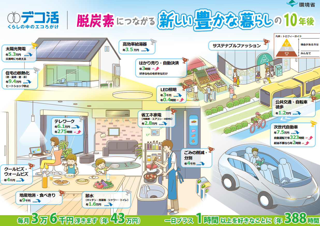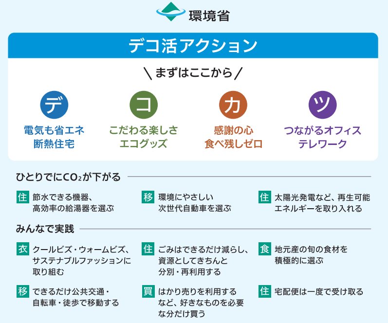 (「デコ活」とは、二酸化炭素(CO₂)を減らす(DE)脱炭素(Decarbonization)と環境に良いエコ(Eco)を含む"デコ“と活動・生活を組み合わせた新しい言葉です。)