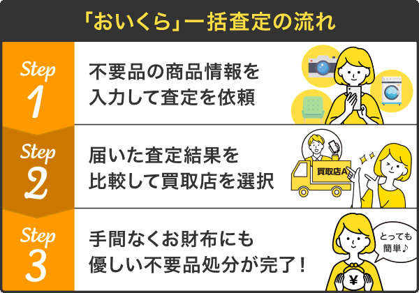 「おいくら」は複数のリユースショップから買取価格を比較し、手間なく売却できるサービスです。