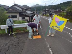 7月19日(土)、環境整備部会員の皆さんで「とまれ」のストップマーク標示作業が行われました。2年ぶりの作業で、猛暑の中を84ヶ所標示してきました。消えかかっていたストップマークが鮮やかな黄色で復活しました。これから一層、歩行者の一旦停止の意識を高めてくれそうです。
