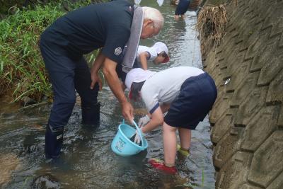 9月12日(金)久間小4年生の「水生生物調査」があり7名のサポーターでお手伝いをしました。水生生物の採取は学校近くの北目川で、石ころなどの採取活動も水遊びもできて子供たちは大喜び。その後、理科室に戻り、採取した川の生き物を分類します。 調査結果・・・北目川は「ややきれい」でした。