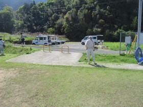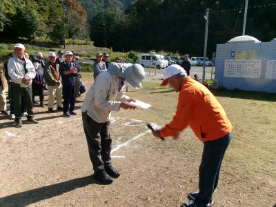 11月16日(日) 、準備に7時45分に集合したときには、太陽の光が射していないので、薄着を後悔していた公民館活動部会メンバーもいましたが、ゲームが始まるころには、雲ひとつない好天になりました。各区の区長さんも参加を促していただいたりして、協力をしていただきました。大会で目立ったプレーヤーは南上区の李さんです。コミュニティの大会に初出場で2位でした。