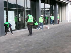 1月25日(日)“最強の寒波”が襲来して冷たい風が吹いている中、2人の女の子を含めて16名が集まりました。今回は駅長からの希望もあり、駅外側の窓の清掃、そして通路などの掃除を行うことにしました。50分ほどでひと通りの清掃を終えて、終了です。季節によって汚れの原因などが違ってきて、掃除ひとつにしても、やってみると色々な発見があります。