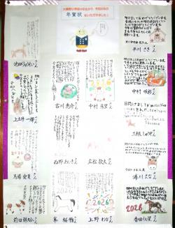 4年生 15名から年賀状をいただきました。芋挿し、芋ほり、稚魚放流体験など、昨年、コミュニティが関係した事業について、自分の言葉で御礼がたくさん書いてありました。