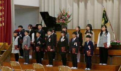 3月13日(金) 大草野小学校の第79回卒業式。今回の卒業生は、令和2年4月、コロナ禍の中で始まった小学校生活。校長先生も式辞では、冒頭にそのことに触れ、子どもたちに向け労いの言葉をかけられ「それぞれ自分色の花を咲かせてほしい。」という言葉で式辞を締めくくられました。15人の卒業生は、懐かしい思い出を振り返り、発表して、言葉を詰まらせ涙声になる子もいました。