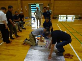 6月22日(日)午前中、不動ふれあい体育館で、嬉野消防署救命救急士のご指導による「心肺蘇生法・AED講習会」を開催しました。講義では「救命の連鎖」を覚えて帰ってほしいと強調されました。また、ふれあい体育館にある実際のAEDを使って説明をしてくれたことで「初めて見た!」と皆さんとても関心を持って話を聴かれていました。今後も各地の講習を活用され「救命の連鎖」が広がることを願っています。