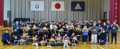 12月14日(日) の午前中、轟小体育館に於いて轟小5年生と保護者の親子行事「注連縄作り」を行ないました。おかげ様で10年を超えるロングランの恒例行事となり、母親部役員さんや先生の協力がとても温かかったです。コミュニティからも、大山さん・青木さんをはじめ、青少年部会員や地域サポーターさんが力を貸して下さいました。ご参加の皆様に感謝致します。