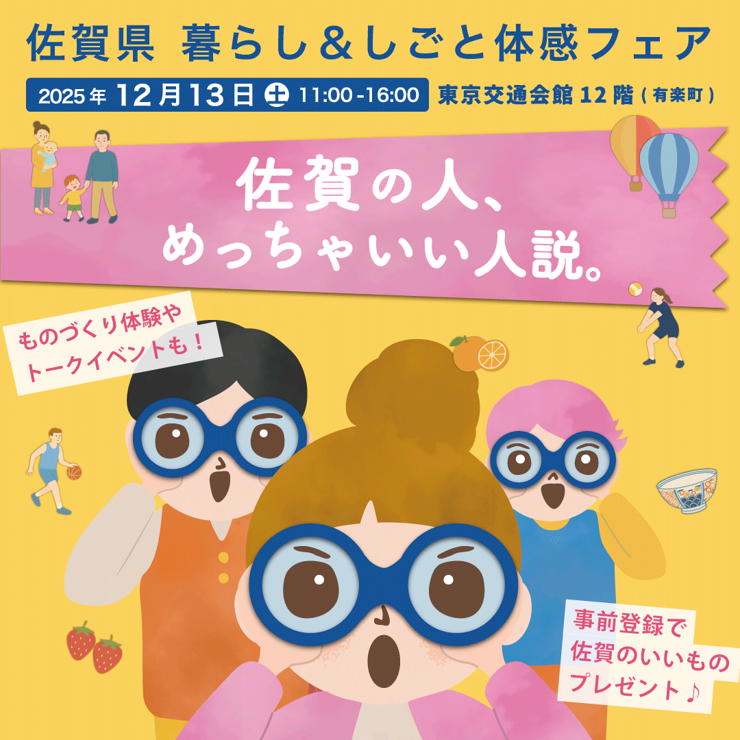 「佐賀の人、めっちゃいい人説。」をテーマに、大規模な移住フェアを東京で開催します。
