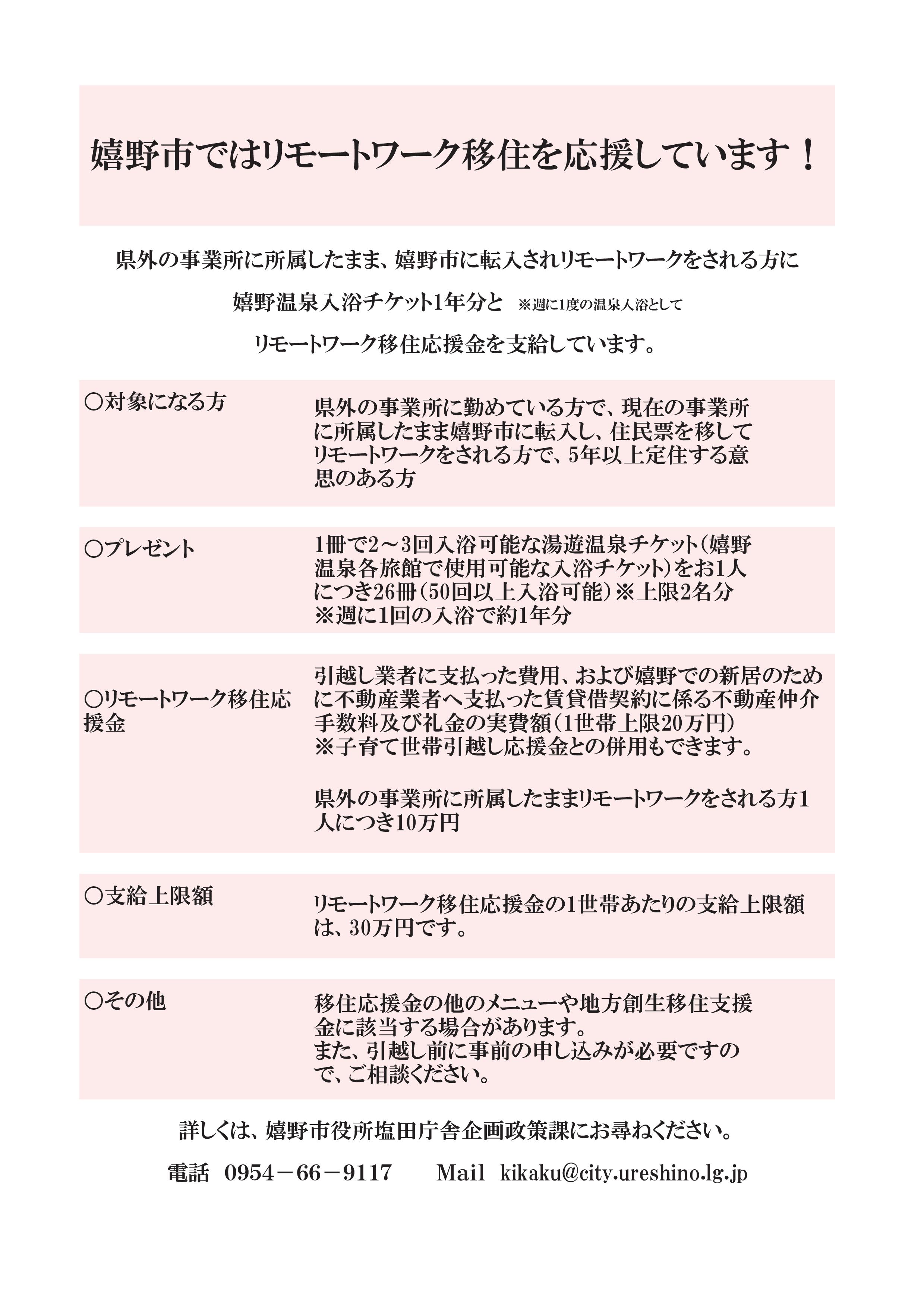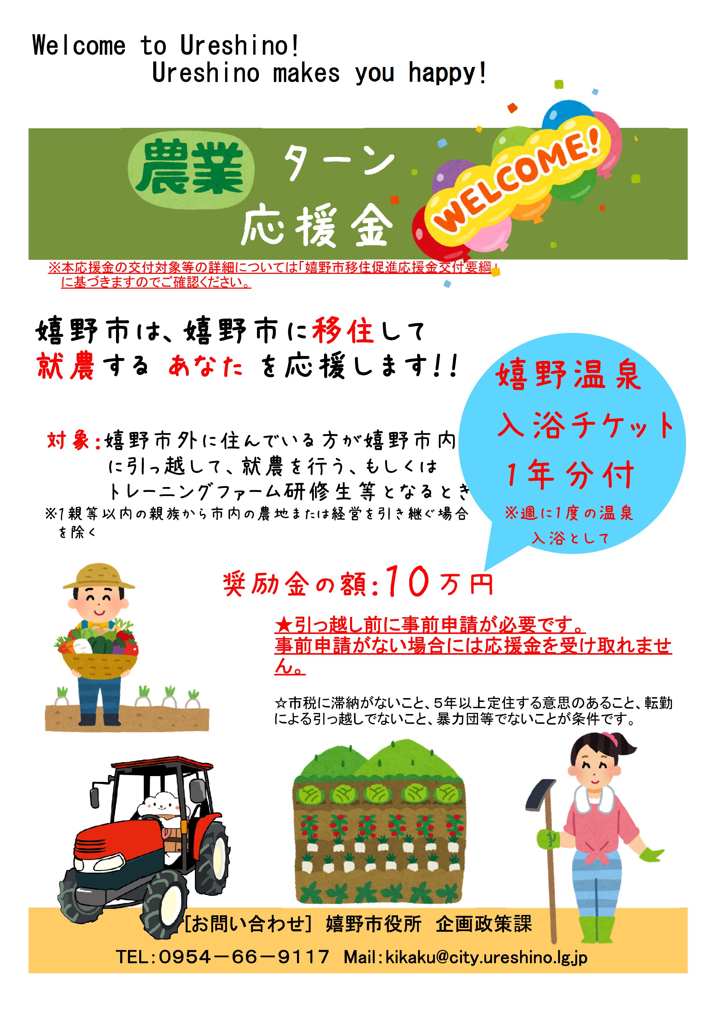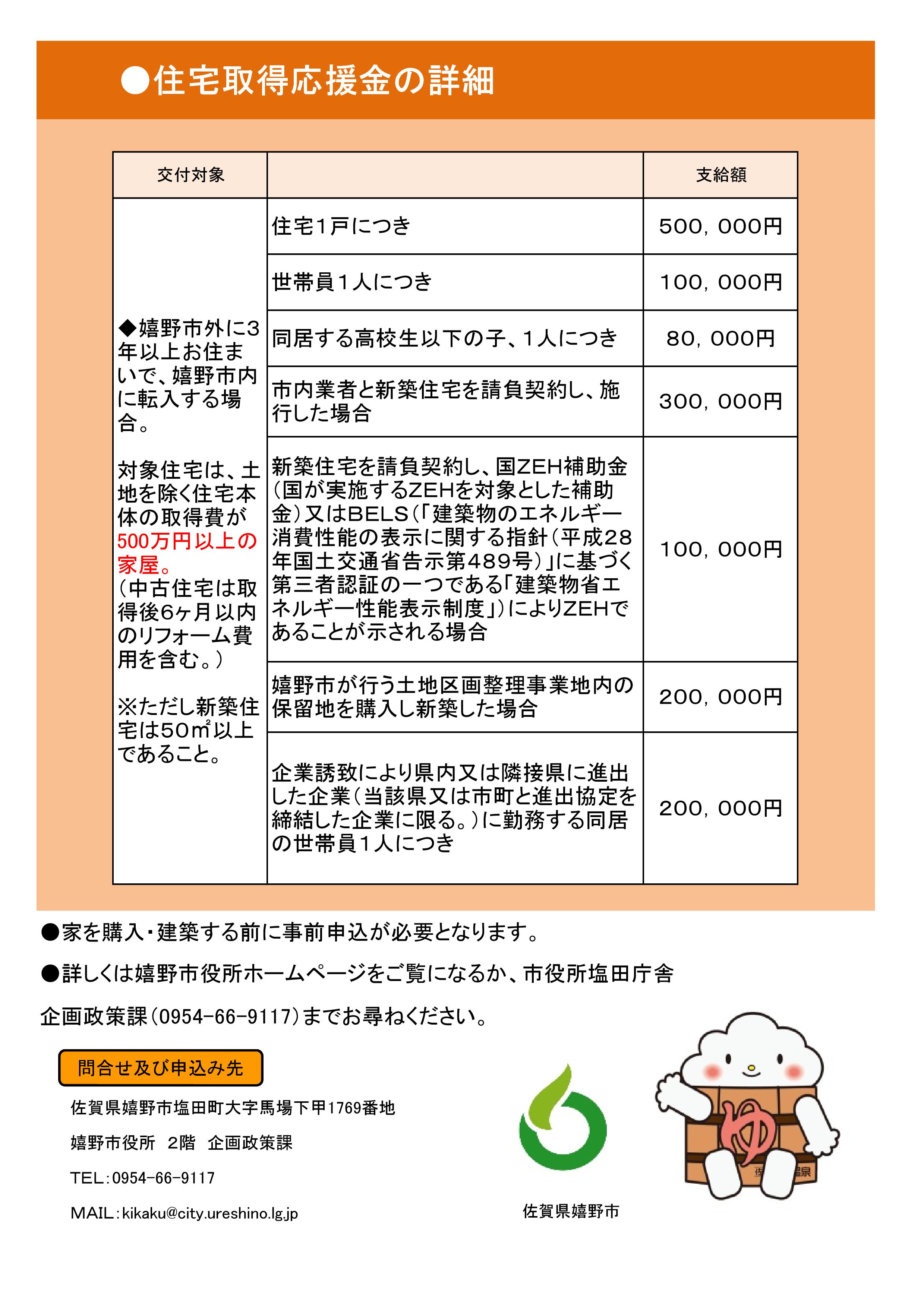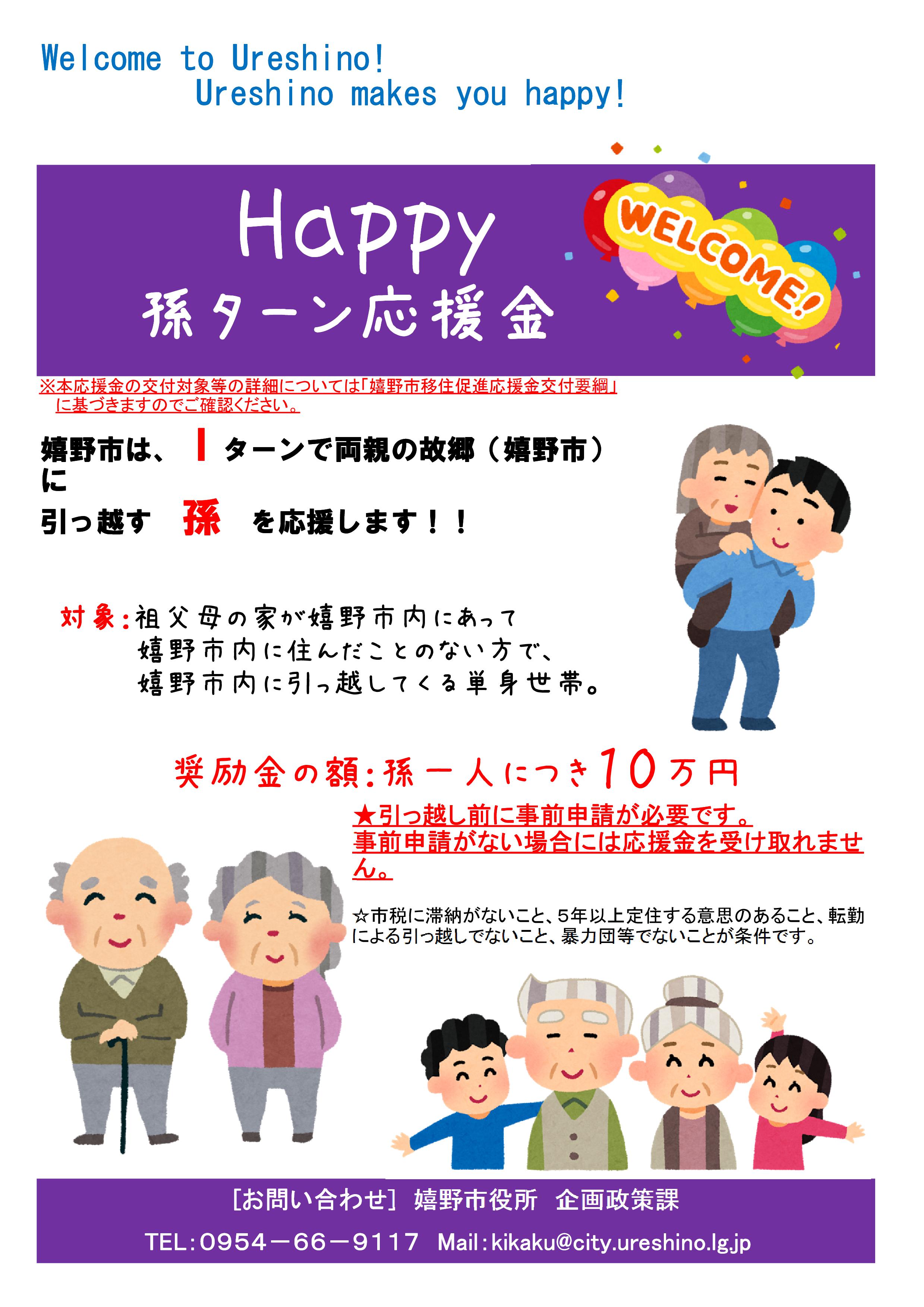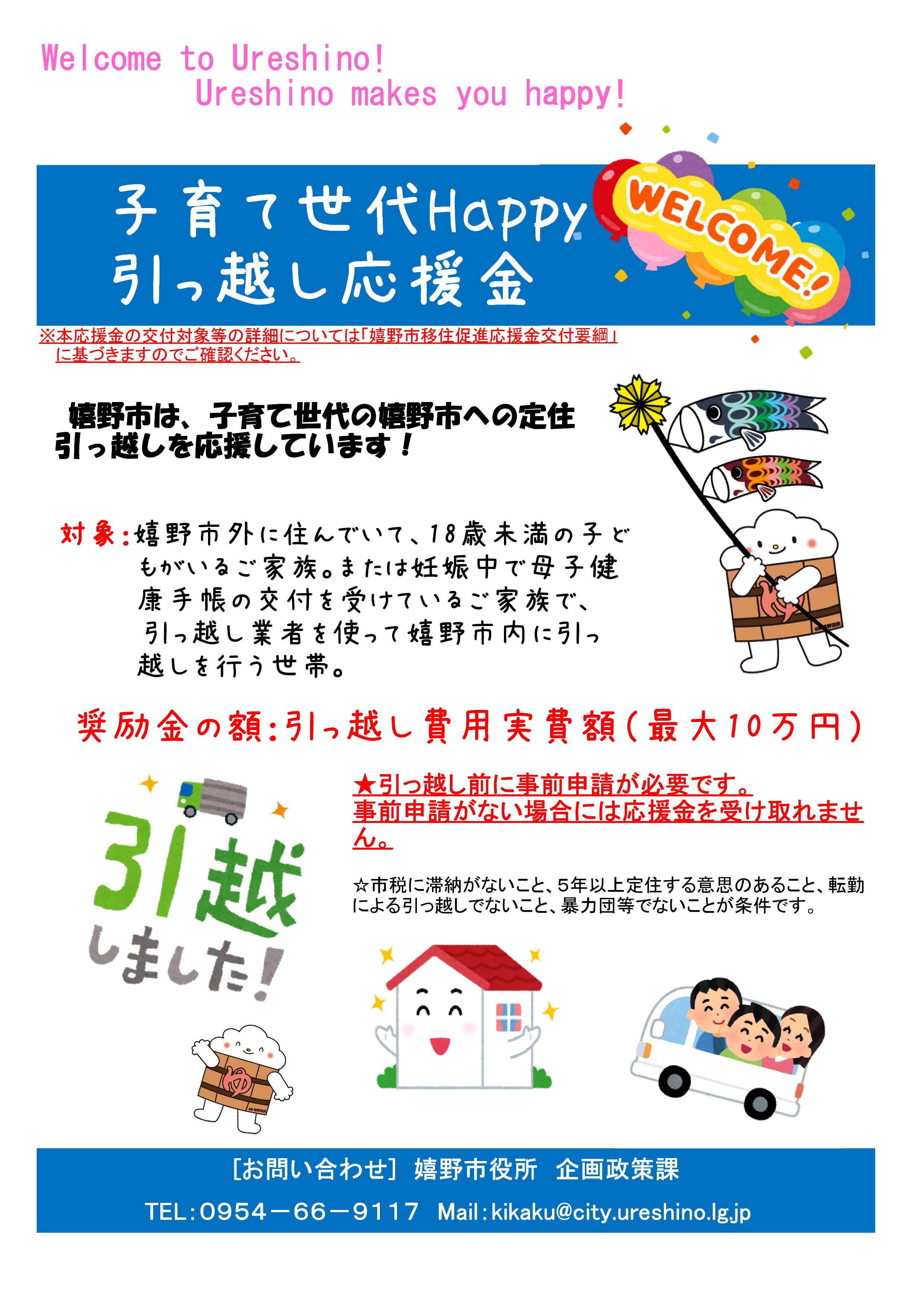 ※税金の滞納がある方、転勤で嬉野に住む方は対象になりません。