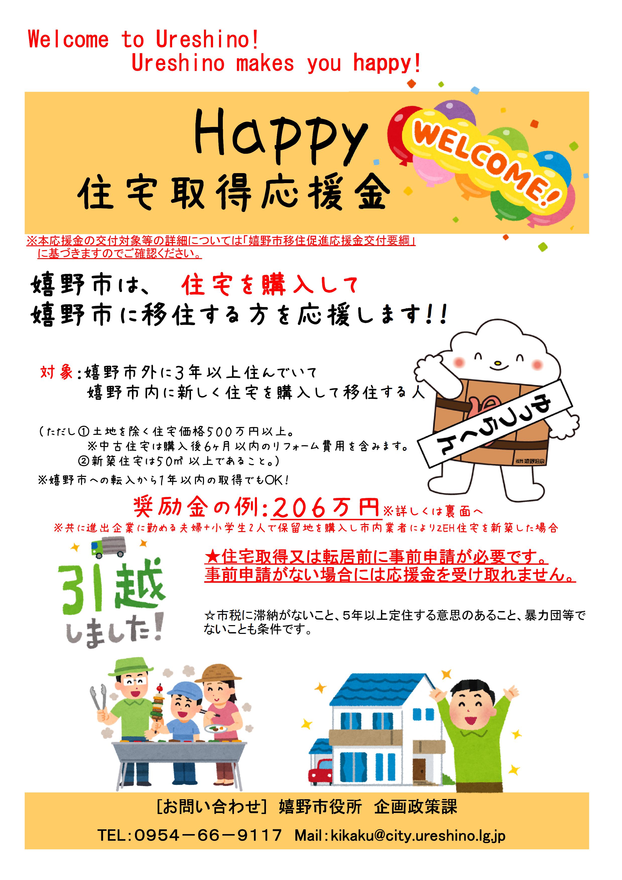 嬉野市の移住促進応援金のうち[(7) HappyWelcome住宅取得応援金]に該当する方で、