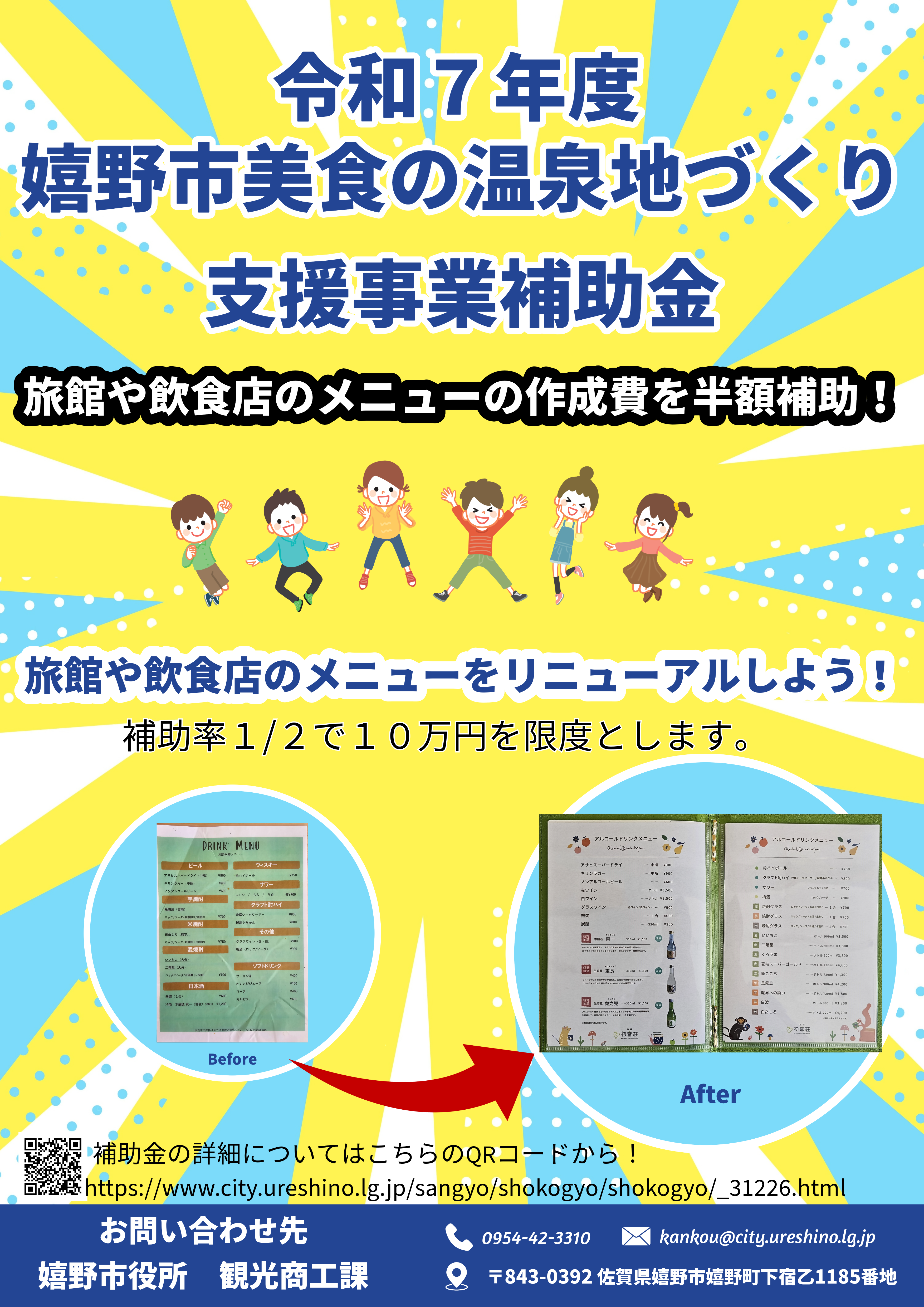 嬉野市美食の温泉地づくり支援事業補助金交付要綱 (123KB; PDFファイル)