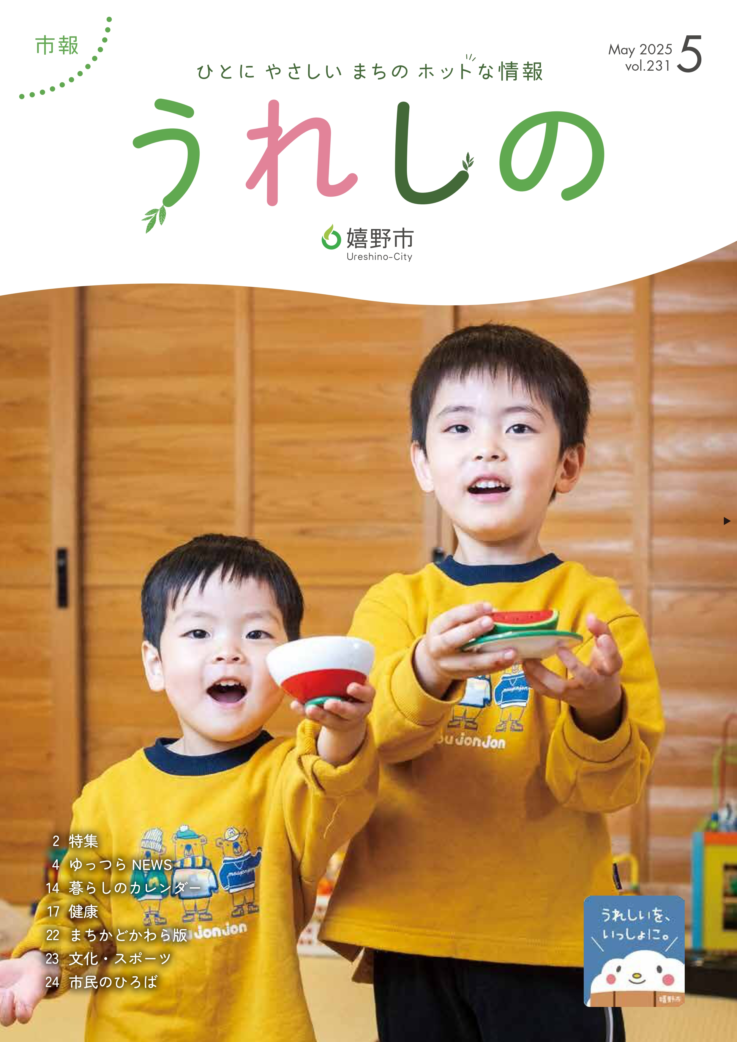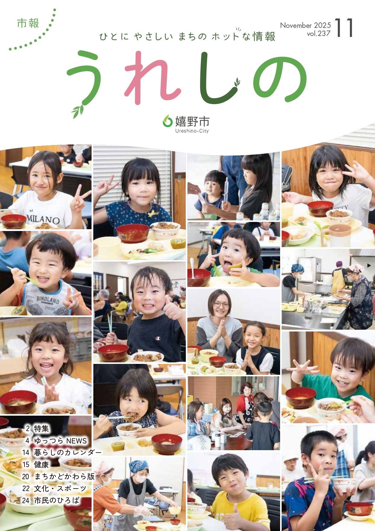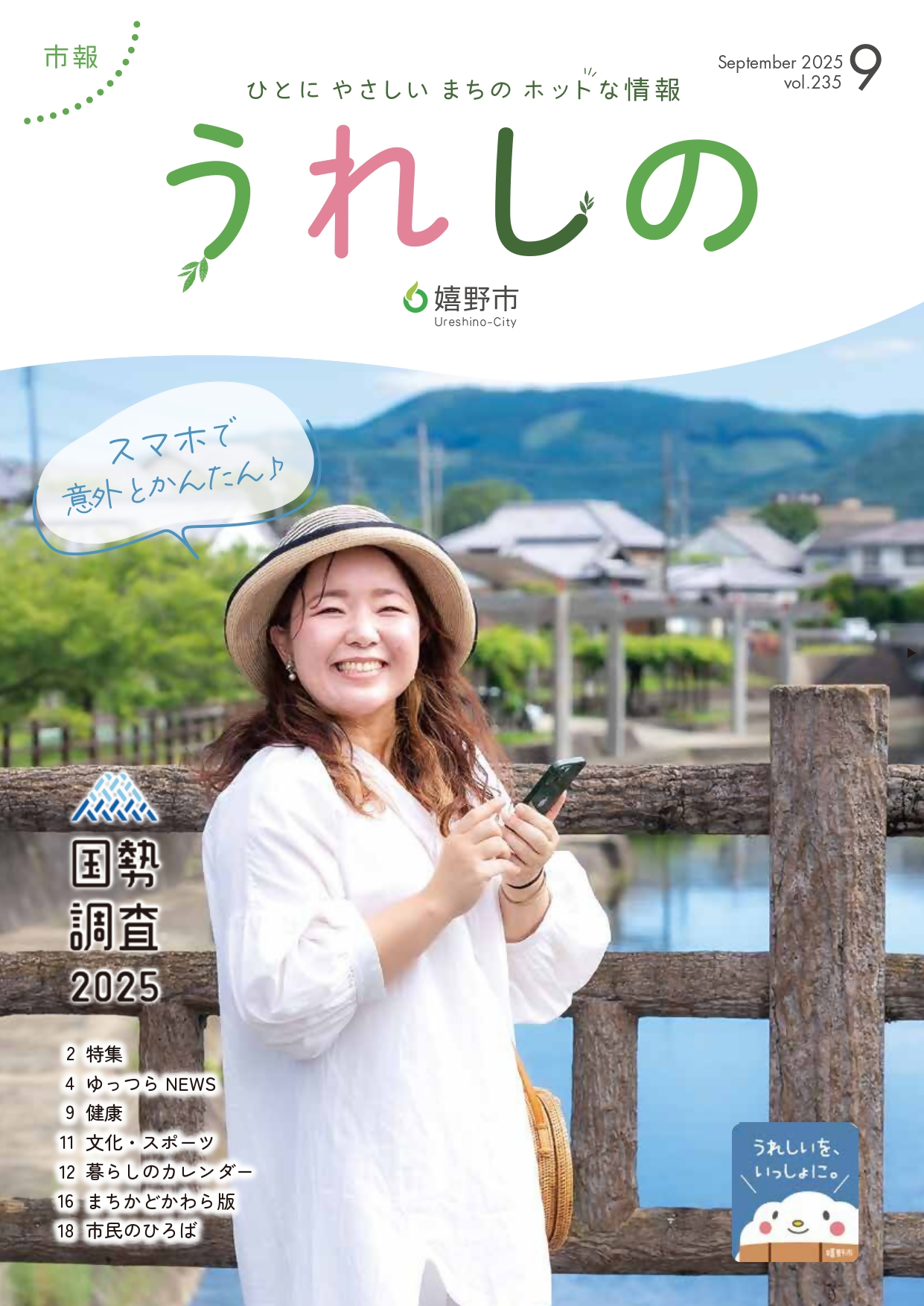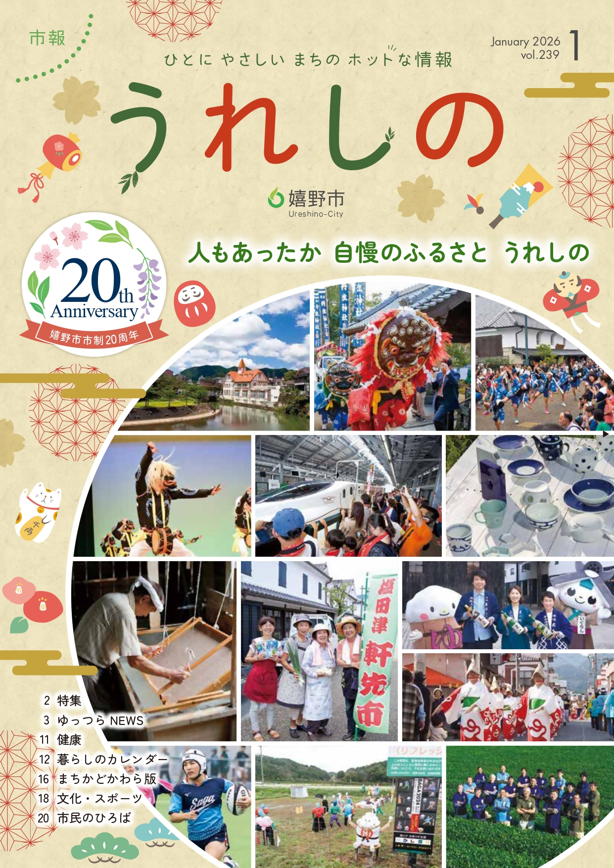 市民のみなさんと市政を結ぶ「市報うれしの」を毎月一回、全世帯に配布しています。