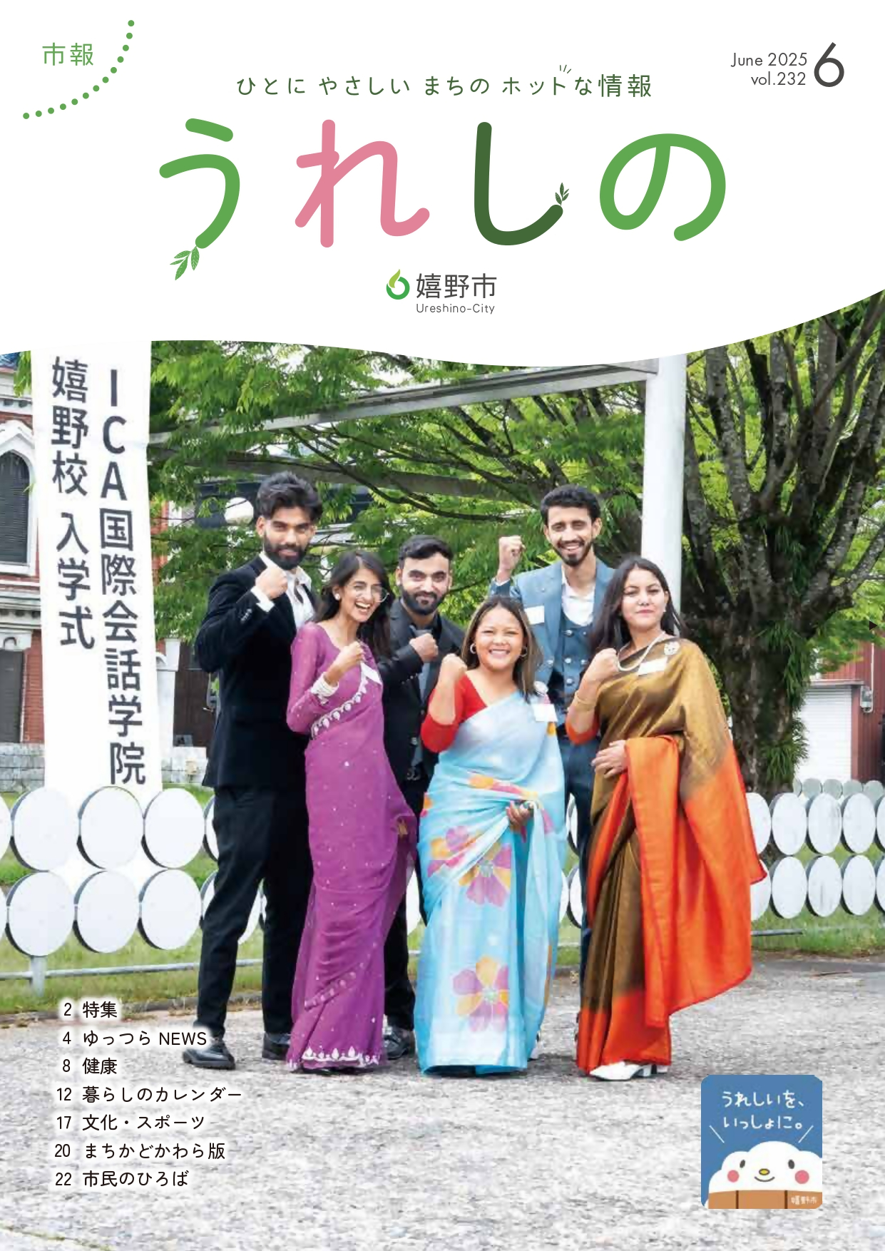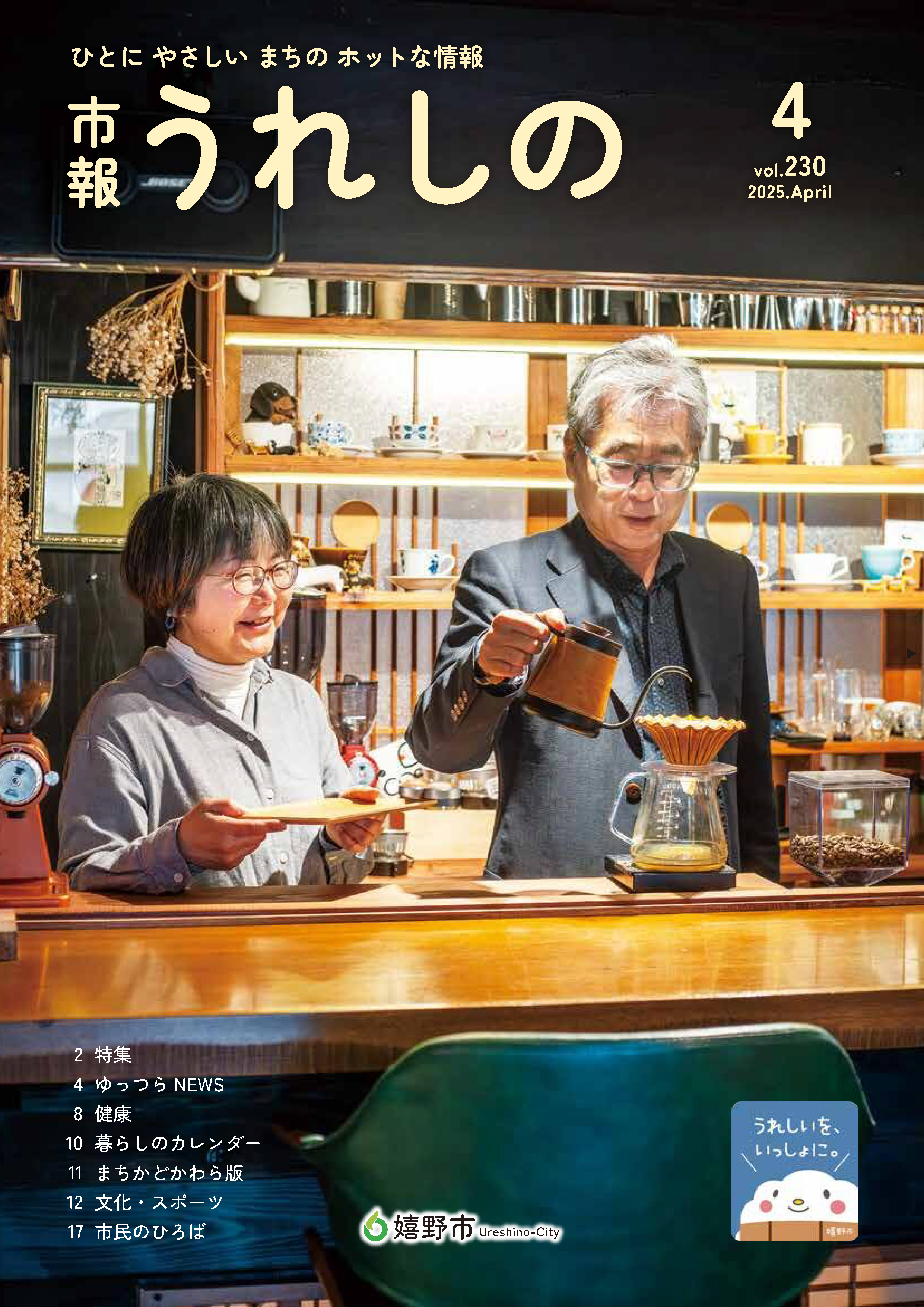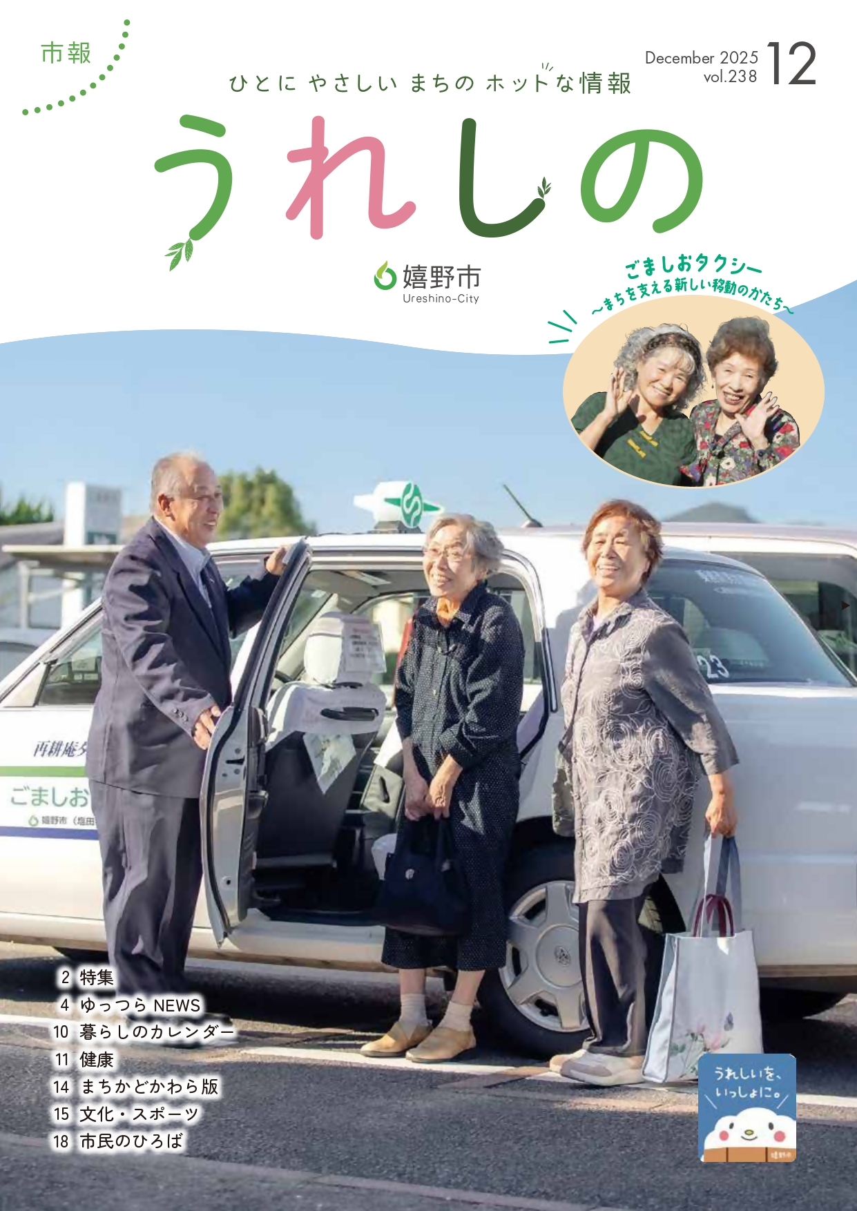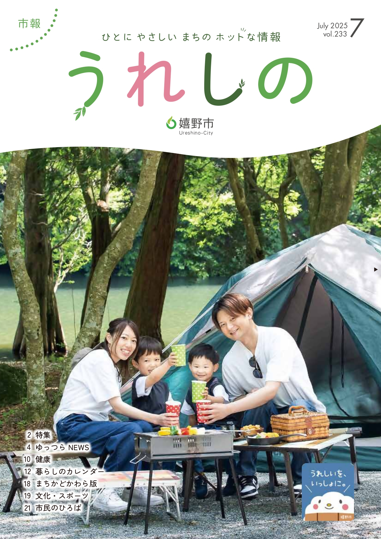 市民のみなさんと市政を結ぶ「市報うれしの」を毎月一回、全世帯に配布しています。