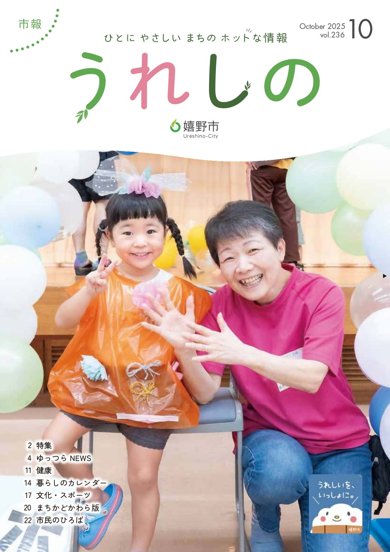 市民のみなさんと市政を結ぶ「市報うれしの」を毎月一回、全世帯に配布しています。