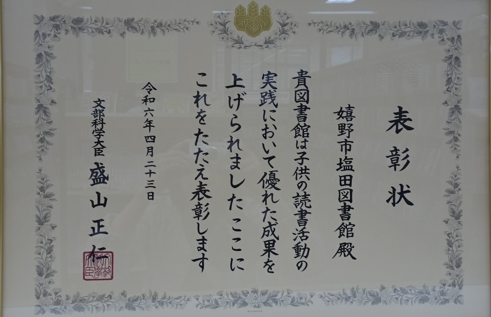塩田図書館が文部科学大臣賞を受賞しました。